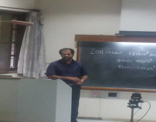 In the end, Dr. Vinayak Pandit, Research Staff Member, IBM, Bangalore took a session on “Basic probability techniques in used in computer science”, in which he introduced various applications in computer science. He covered different topics in his talk like sampling, model building, estimation, regression analysis and data mining. |
